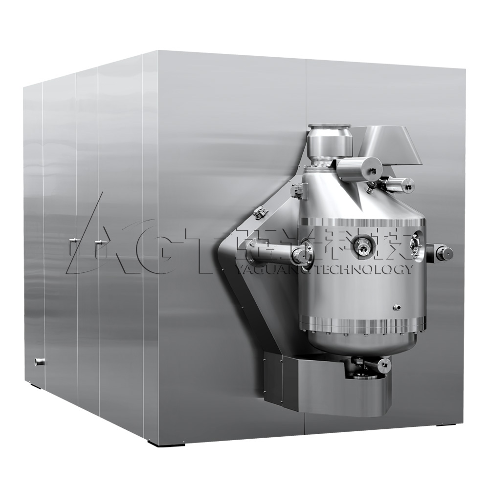 自動密閉出料裝置 俗稱"象鼻子出料裝置",能夠有效避免膠塞出料時與外界接觸造成污染; 出料系統可進行CIP和